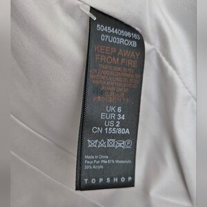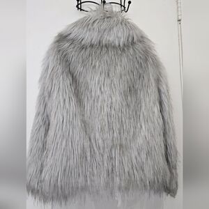Topshop Faux Fur Grey Shag Coat Jacket Grey White