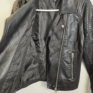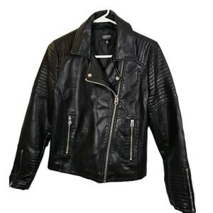 Topshop Faux Leather Bike Moto Jacket Black Size 6 Grunge Punk Side Front Zip