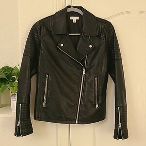 Topshop Faux Leather Bike Moto Jacket Black Size 6