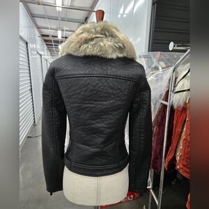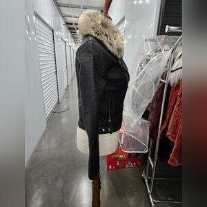 Topshop Faux Leather Moto Jacket with Faux Fur Collar Black Size US 2 / UK 6