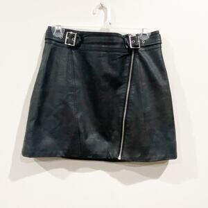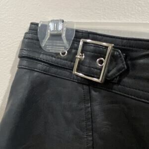Topshop Faux Leather Moto Mini Skirt Size 8P Black Silver Buckles Edgy Chic