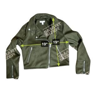 Topshop Faux Suede Moto Jacket Lux Olive Green With Silver Hardware Size 6
