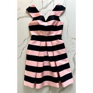 Topshop Fit & Flare Satin Strip Dress in Pink/Black Size 2