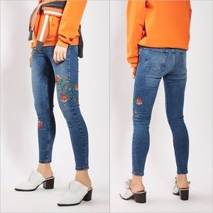 Topshop Floral Embroidered High Rise Jamie Jeans