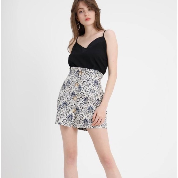 Topshop Floral High Waisted Buttoned Mini Skirt Size 4 NEW