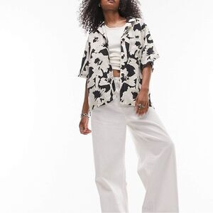 Topshop Monochrome Black Cream Floral 100% Linen Oversized Resort Short Sleeve Button Down Shirt Size XS. Great condition! No flaws! It’s a Topshop size 2 which fits a size XS. Enjoy!