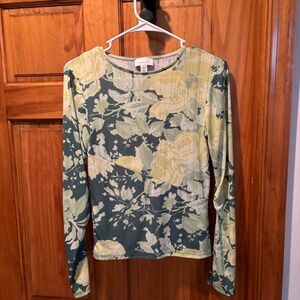 Topshop floral long sleeve top in greens. Crewneck. Women's size 6. Gently used with no flaws.