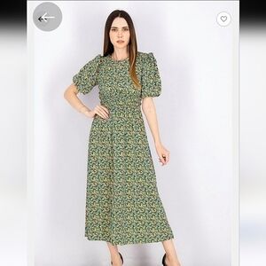Topshop Floral Open Back Frill Puff Sleeve Midi Dress-Size 14