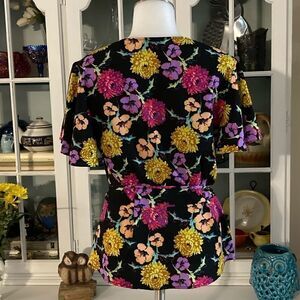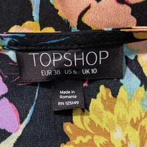 Topshop Floral Silk Wrap Top Size 6 Black with Floral Print