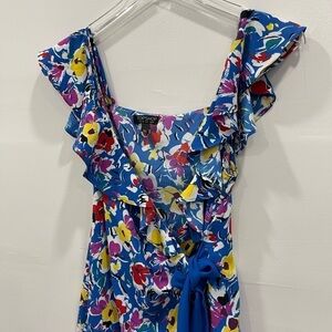 Topshop Floral True Wrap Dress Blue Ruffle Trim Hem Size 6