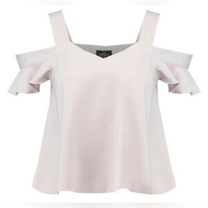 Topshop Gray Flutter Sleeve Open Shoulder Blouse, Light Gray, Size 4