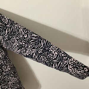 Retro Aesthetic Whimsical Animal Pattern Long Sleeve Lightweight Top with Button and Collar Details.