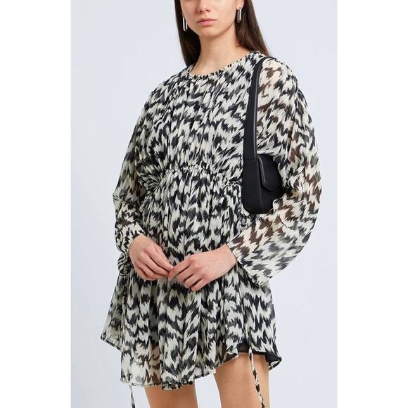 Topshop Dress Oversized Gathered Channel Waisted Printed Mini in Mono NWT
