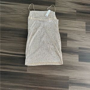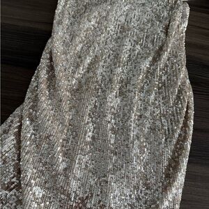 Dazzling silver sequin dress with thin straps. Ideal for celebrations.