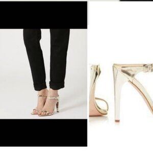 Gorgeous metallic gold stiletto mules. New without box. 5” heel. Adjustible strap with buckle closure. Synthetic materials.