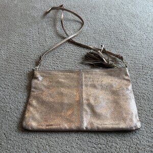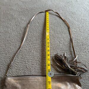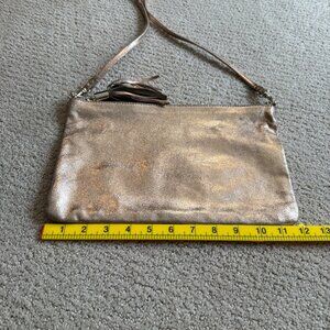 Topshop Gold Leather Bag Crossbody Tassel Zipper Removal Strap Boho Going Out Mild Distressing