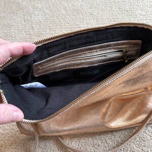 Topshop Gold Leather Bag Crossbody Tassel Zipper Removal Strap Boho Going Out
