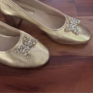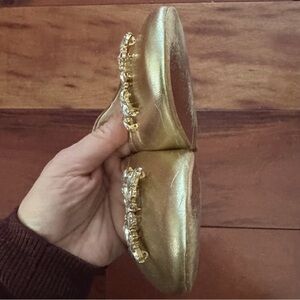 Reposhing. Worn a couple times. Last photo is what they look like now. Topshop Gold shoes Super cute and conformtable