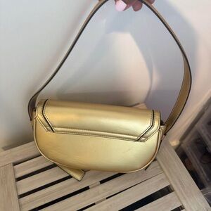 Chic gold shoulder bag with a sleek design. Perfect for elevating any outfit.