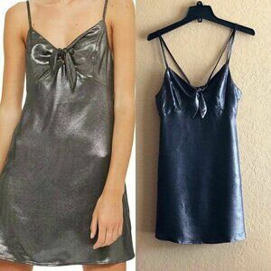 Topshop Gray Metallic Tie Front Slip Dress Size 4