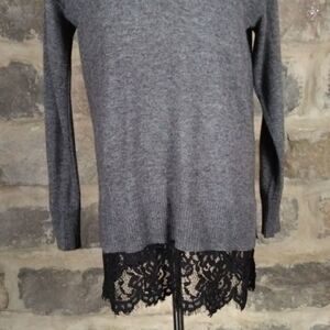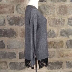 Topshop Gray V Neck Sweater with Lace Trim Elegant Tunic Top Woman's 4
