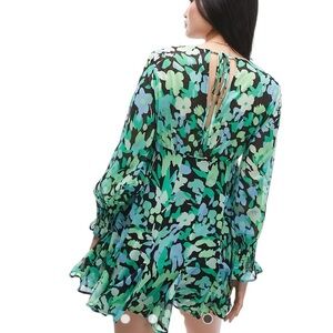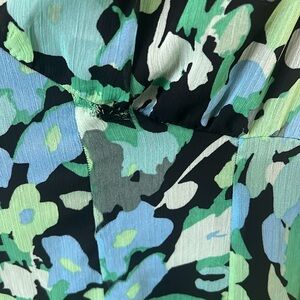 Stylish Topshop blouse with a vibrant pattern. Features shades of green and black. Perfect for casual or formal wear.