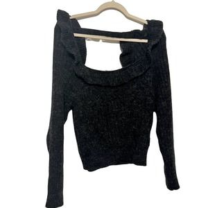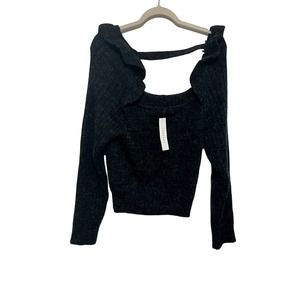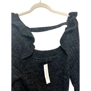 Topshop Grey Ruffle Cable Knit Sweater with Back Cut out. New Size 8-10
