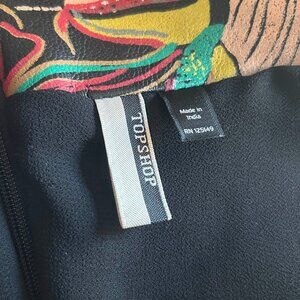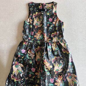 Rare Topshop Hand Painted Leather Dress as seen on Demi Lovato on the X-Factor in 2012. The leather jacket version was seen on Effy Stonem in Skins Fire Part 2 (season 7 episode 2) and on Rita Ora. Both were from Topshop's more limited premium line, which can be identified by the vertical white label. The design features a vibrant floral design with foxes, birds and butterflies. Topshop can run a bit small sometimes.