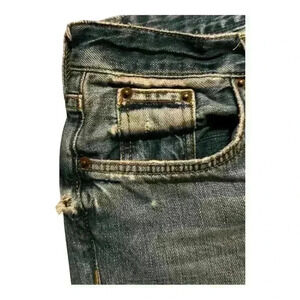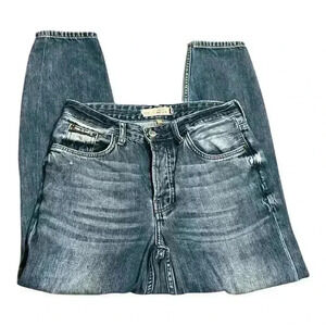 Stylish distressed jeans. Classic blue color. Perfect for casual wear. Preworn, in excellent condition. Jeans are manufactured distressed and 100% cotton. Size 25” waist.