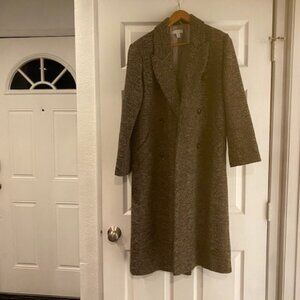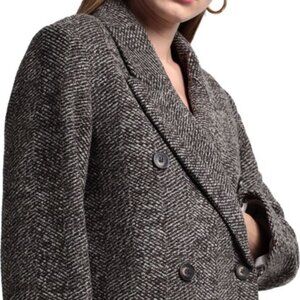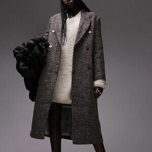 This picture-of-polish herringbone coat is designed in a longline double-breasted silhouette.