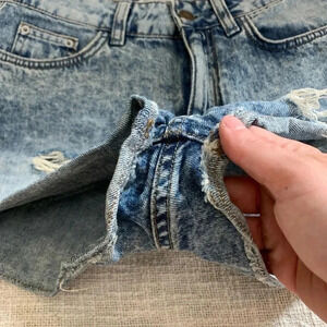 Topshop High Rise Distressed Denim Hallie Moto Shorts