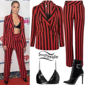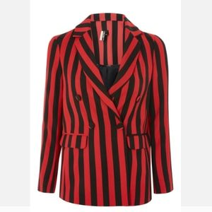 Topshop Humbug Red & Black Thick Stripe Double Breasted Blazer