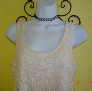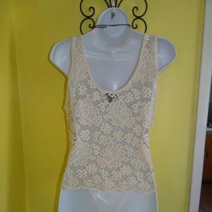 This item is used but still in good condition. Topshop ivory cream lace top in woman's size US 4. It's sheer and lightweight. Very cute chic piece.