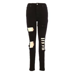 Topshop Jamie Distressed Black High Rise Window Rip Skinny Jeans Size 28