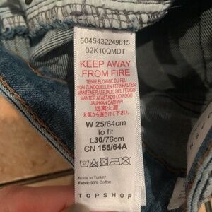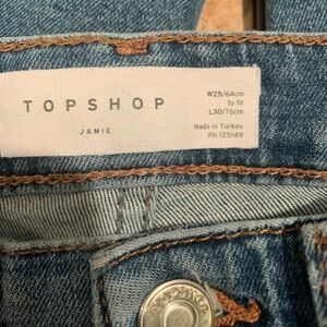 Topshop Jamie Ripped Ankle Jeans. Zip and button closure. Women's size 25 . Gently used with no flaws.