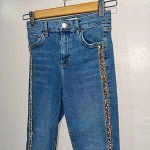 Topshop Jeans Womens 26 High Rise Skinny Jamie Beaded Side Stripe Stretch Denim