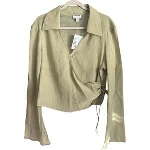 Topshop Khaki Green Wrap Blouse Long Sleeve Collared Size 12 NWT