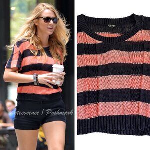 Topshop Knitted Striped Top in Black / Peach ASO Blake Lively Gossip Girl Set