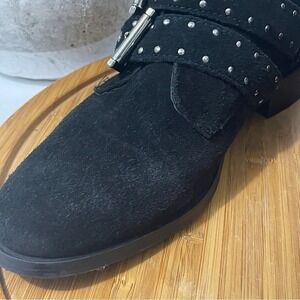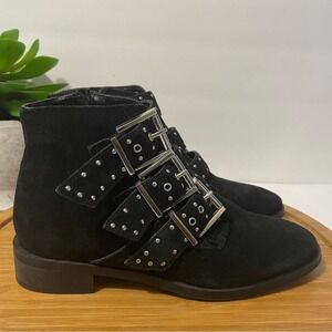 Topshop Krown Black Suede Studded Moto Ankle Boot Women's 5.5 Chic Biker Bootie