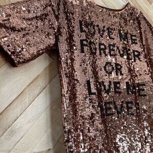 Topshop LOVE ME FOREVER OR LOVE ME NEVER Sequin Rose Gold Top