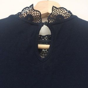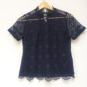 Topshop Lace Top, Dark blue, high neck & keyhole!