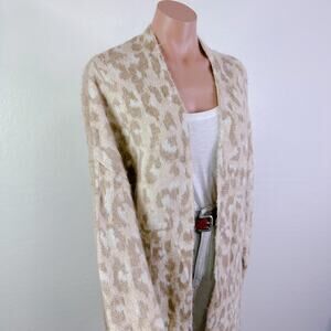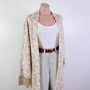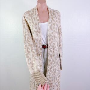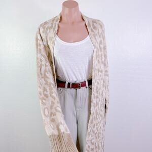 Topshop Leopard Animal Print Longline Open Front Cardigan Duster Tan Cream 4 6