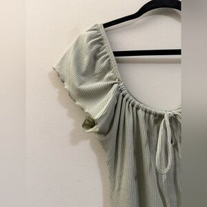 Topshop Lettuce Hem Off the Shoulder Dress in Sage Green - 8