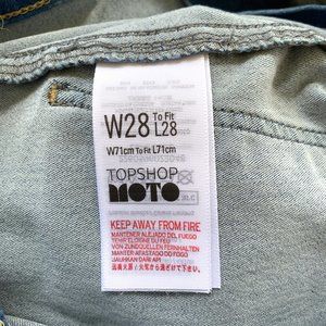 These Topshop “Joni” jeans are in the size 28x28. These jeans are equivalent to a USA 6P, but they could fit a 4P because these jeans run a bit small. The material has some stretch to it, so you can give or take an inch or two on the waist and hip measurements. It’s in excellent new with tags condition!