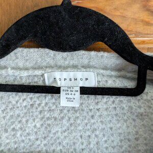 Topshop cardigan, cropped grey cardigan, textured knit sweater, button front cardigan, light grey knit top, trendy cropped sweater, Topshop knitwear, cozy layering cardigan, neutral cropped cardigan, women’s casual chic cardigan.