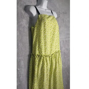 Topshop Lime Green Maxi Adjustable Floral Open Back Top Tie Dress Size 4 52" length