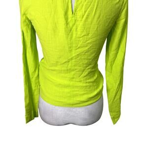 Topshop Long Sleeve Blouse Crew Neck Drawstring Tie Ruched Green Women's 2 NWOT