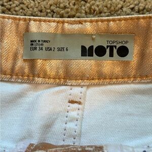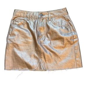 Topshop MOTO Chrome Metallic Mini Raw Hem Jean Skirt | Size US 2