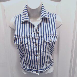 Topshop MOTO Women's Size 2-Striped Distressed Denim Sleeveless Vest-White/Blue