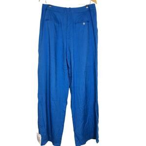 Topshop Mensy Pants Baggy Pleated Front High Rise Wide Leg Trousers Blue NWT 10